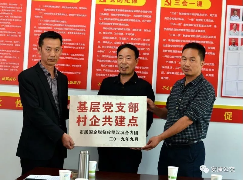 (市公交公司黨委副書記錢萬輝和市水務(wù)集團(tuán)公司總會計(jì)師陳世安共同為“基層支部村企共建點(diǎn)”授牌)